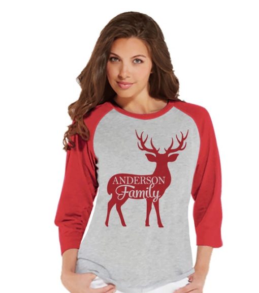 Rentier Weihnachten Shirt Damen Baseball rotes Raglan T Shirt benutzerdefinierte Urlaub Top Adult Christmas Outfit Familienurlaub T Shirts